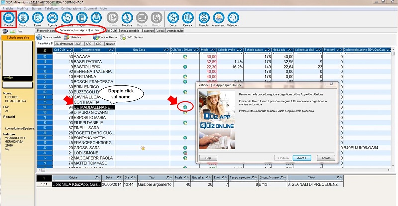 - da Pratiche>Preparazioni, Quiz App e Quiz Casa, facendo doppio click su di un candidato che presenta l'icona del mondo si aprirà questa schermata:
