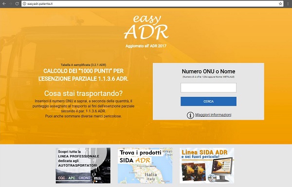 L’applicazione è raggiungibile sia da QR Code stampato all’interno del Manuale ADR SIDA che da SIDA Guida Rapida ADR che direttamente da questo link: http://easyadr.patente.it