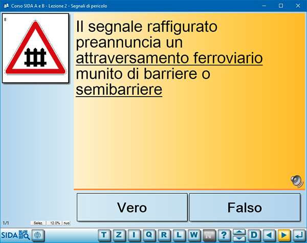 Se non si effettua nessuna ulteriore configurazione dei quiz difficili, SIDA proietterà da default solo i quiz che, a livello nazionale, riportano una percentuale di errore che parte dal 29,1% (nel nostro esempio, saranno proiettati 85 quiz relativi ai segnali di pericolo sui 1104 complessivi di tutto il corso per la patente A e B).