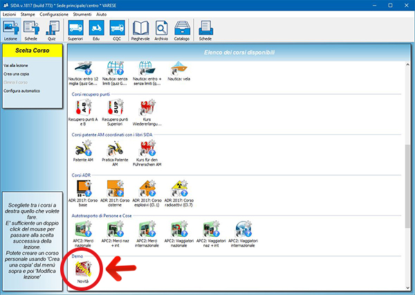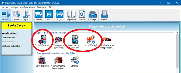 Tutto il materiale didattico è inserito nel corso SIDA A e B, nel KURS SIDA A/B per le autoscuole dell'Alto Adige e nel Corso solo quiz SIDA A/B