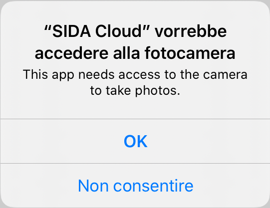 - SIDA CLOUD DA DISPOSITIVO MOBILE: solo alla prima acquisizione della foto richiede il permesso per accedere alla fotocamera e poi apre automaticamente la fotocamera per acquisire la foto del candidato. Quando la foto viene confermata automaticamente viene conclusa la procedura.