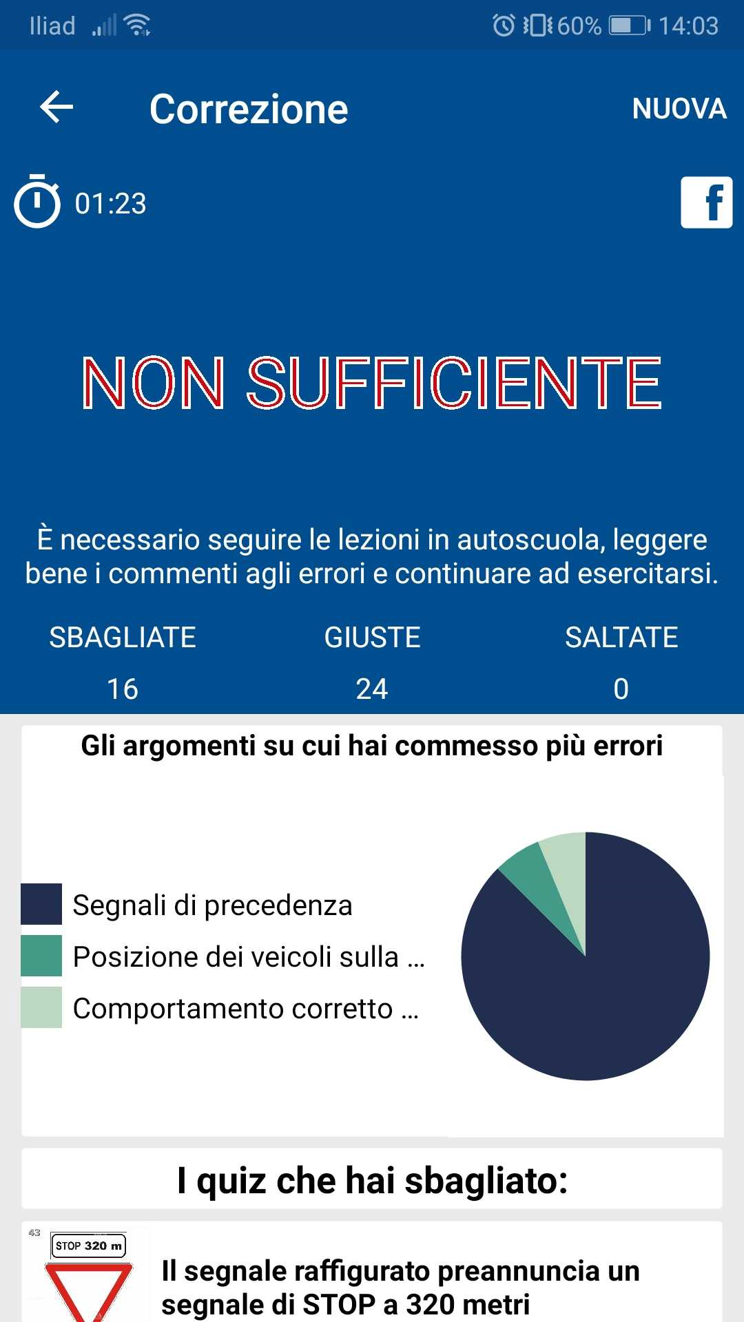 Tutti i quiz svolti in autoscuola (SIDA Quiz) o a casa (ad esempio con SIDA Quiz App vedi immagine sottostante) dal candidato appariranno nella tabella (foto sopra rettangolo rosso).