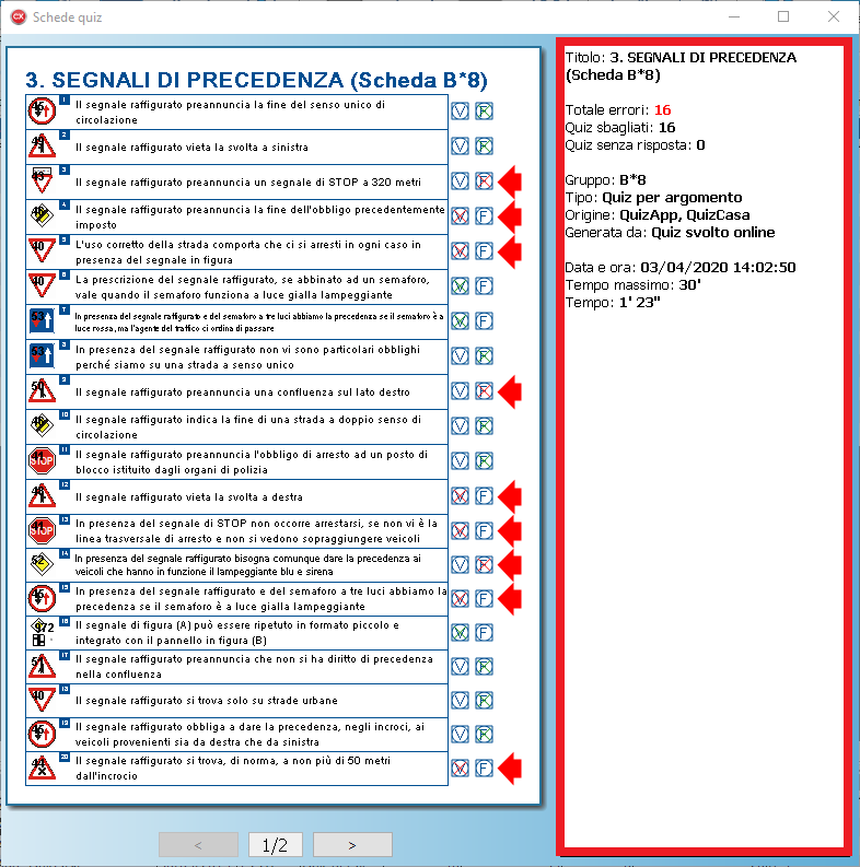 - a destra i dati riepilogativi: titolo, totali errori, gruppo.