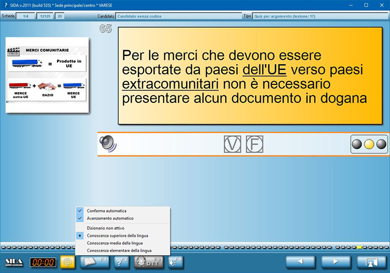 Per questo motivo nel modulo quiz di SIDA, il vocabolario, qualora attivato, è visibile nei primi due livelli di esercitazione: