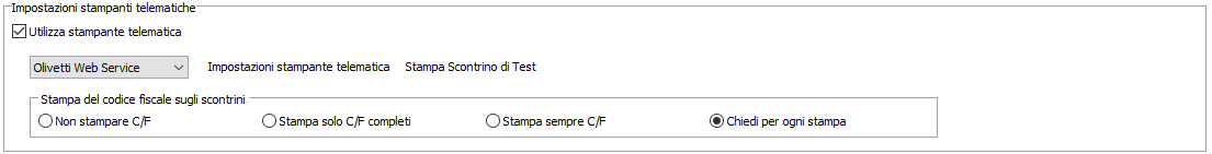 - "Chiedi per ogni stampa": possibilità di scegliere se stampare il codice fiscale o il codice lotteria
