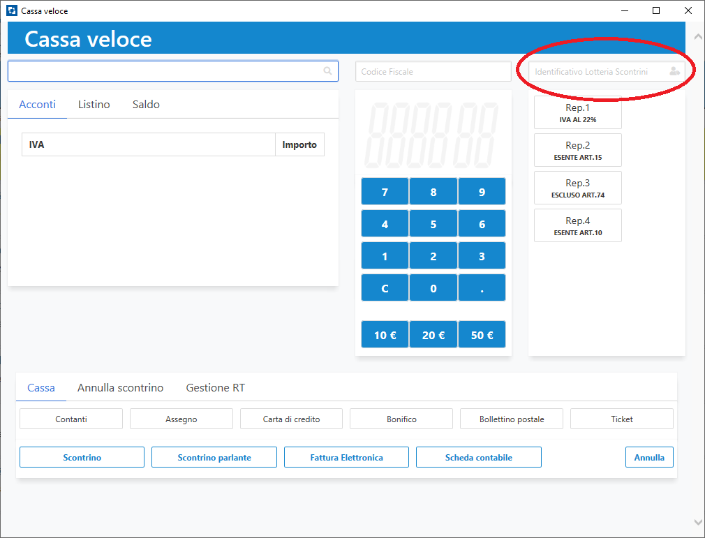 Per stampare uno scontrino con annesso un codice lotteria occorre aprire la Cassa veloce: