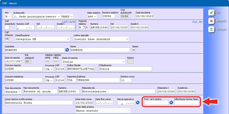 - Pratica "CAP - rilascio": per le pratiche di rilascio CAP, nell'anagrafica del candidato è stata aggiunta la sezione relativa allo stato della pratica e la possibilità di inviare una prima fase medica.