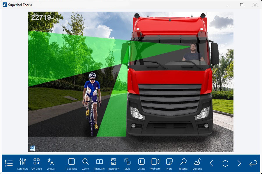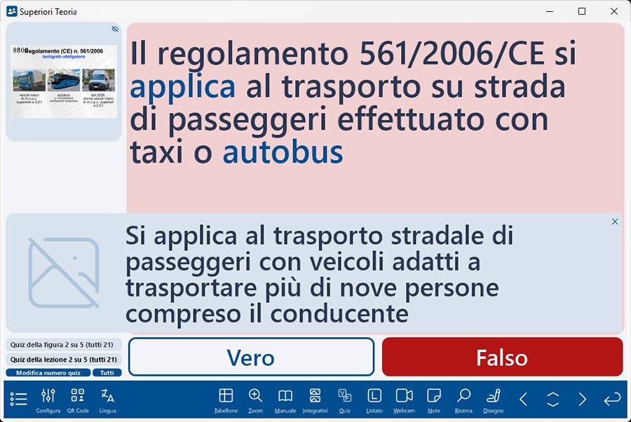 Abbiamo aggiornato, integrato e migliorato tutte le aule dei corsi delle patenti superiori con un abbinamento più pertinente delle immagini ai quiz e aggiornando le immagini più datate. Abbiamo integrato le immagini inserite nelle varie aule per coordinarle con le nuove videolezioni delle categorie superiori.